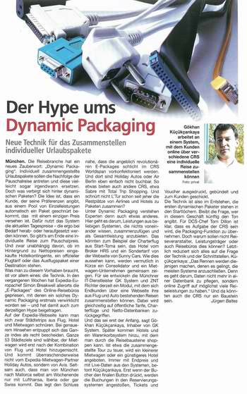 ... Bei GK System/ZNT Richter will IT-Spezialist Gökhan Kücükcankaya den Kunden, die über keine eigene Flug-Engine verfügen, künftig das Dynamic Packaging Tool inklusive einer Linienflug-Buchungsmaschine anbieten. Mitte August soll als Linien-Engine die IBE von Ires.net angebunden werden, kündigt Kücükcankaya an: "Die notwendige XML Schnittstelle haben wir gemeinsam definiert." Sobald Ires.net eingebunden sei, werde Hinundweg.de die Dynamic-Packaging-Lösung von GK System einsetzen. Dann sollen folgende touristische Leistungen mit dieser Technologie gebündelt werden: Linienflug, Charterflug, Warmwasser-Hotels und Mietwagen. Die Hoteldatenbank mit rund 3500 Hotels in Warmwasser-Gebieten ist eine Eigenentwicklung von Hinundweg. ...